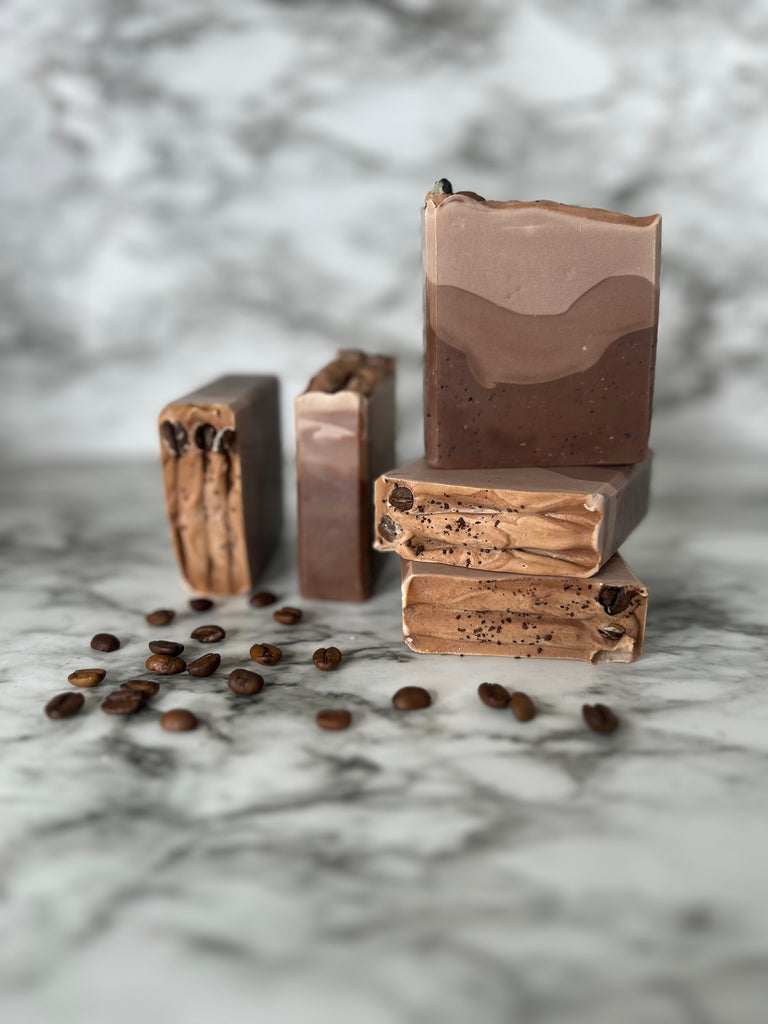 This 4-4.5oz coffee soap is made with our personally customized recipe including sunflower oil and olive oil. Both are great for the skin and sunflower oil includes vitamin E. Most of the water in this recipe was replaced with coffee. Coffee beans on top of the soap for decorative purposes only, it is recommended to remove them before using it in the shower.